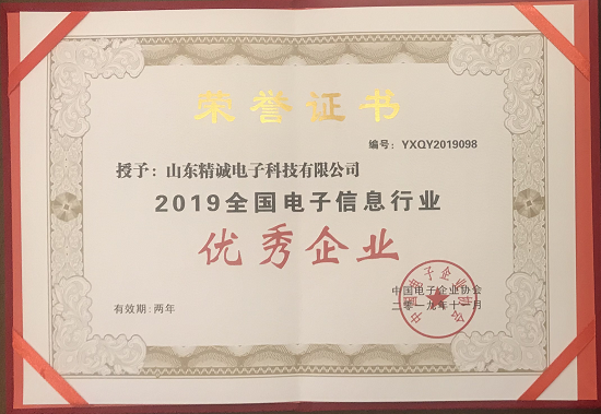 山東精誠電子科技有限公司榮獲“全國電子信息行業(yè)優(yōu)秀企業(yè)”稱號